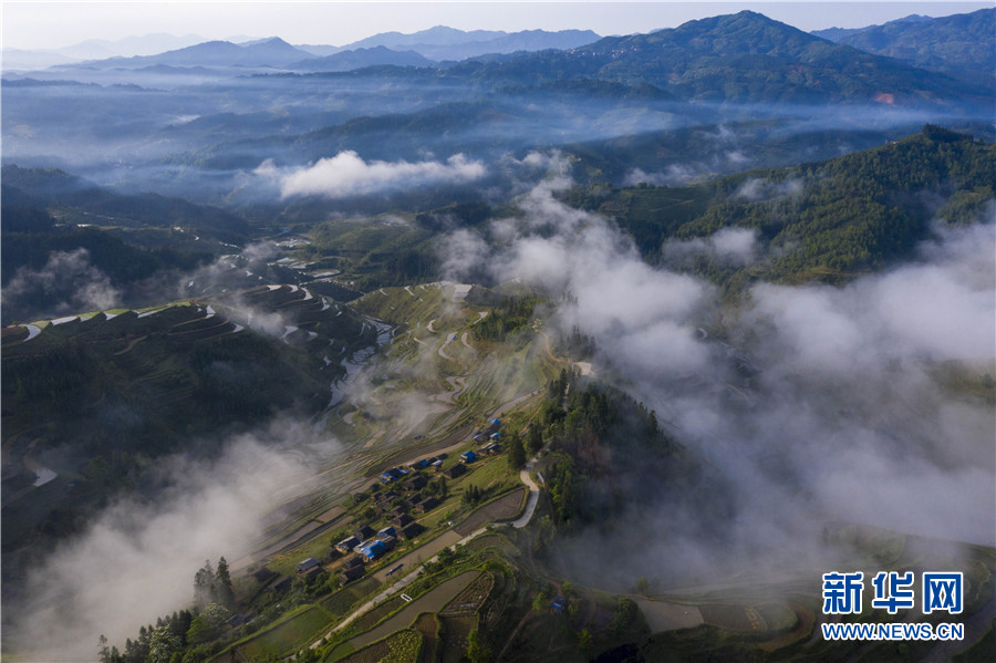5月4日,貴州省從江縣丙妹鎮南瓦上空雲霧繚繞(無人機照片)。