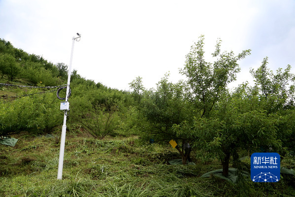 安裝在板陽蜂糖李種植基地內的監控攝像頭。新華網 周遠鋼 攝