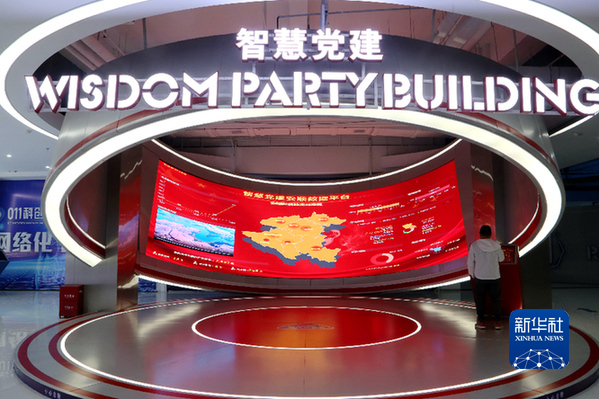 “011科創谷”數字展廳內的智慧黨建展示平台。新華網 周遠鋼 攝