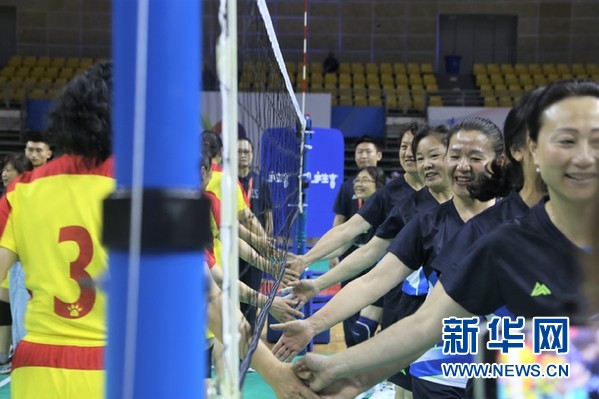 開賽儀式上,由六盤水市各社區、街道選拔組隊的老年運動隊,進行了廣場舞健身操、健身氣功展演。儀式後,氣排球比賽率先打響。(蔡連素)