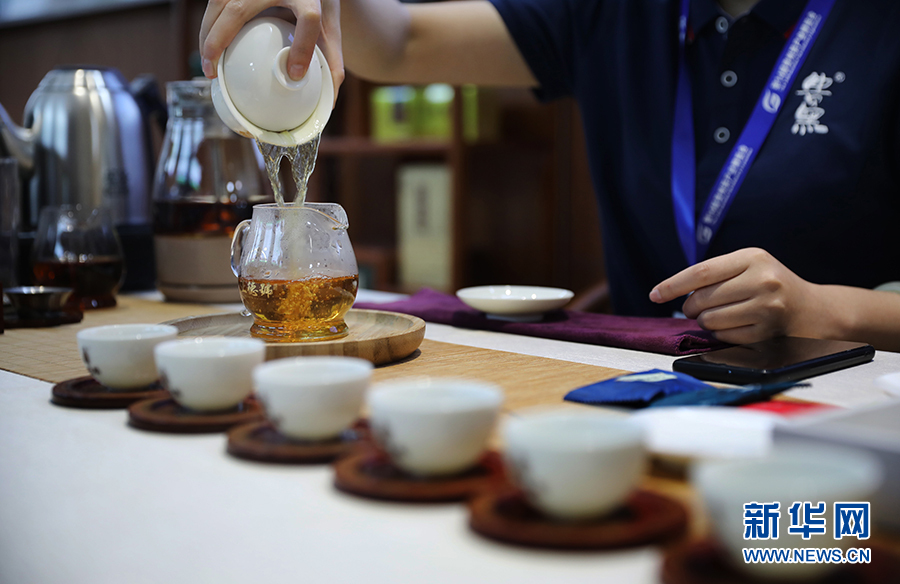 6月15日,參展商在為貴州茶博會的嘉賓客商泡茶。新華網 盧志佳 攝