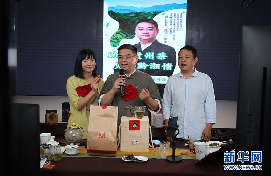6月15日,本屆貴州茶博會邀請許多知名人士通過直播帶貨的形式推介、銷售貴州茶産品。新華網 盧志佳 攝