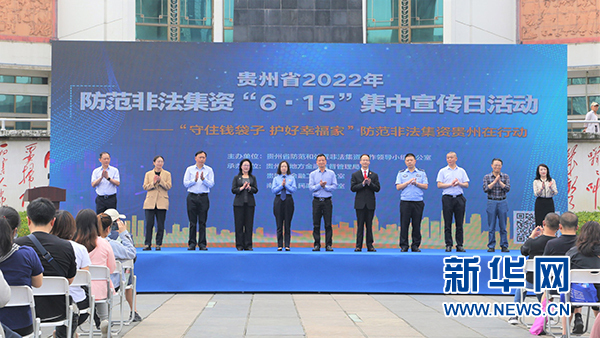 新華網貴陽6月15日電 6月15日,貴州省防範非法集資集中宣傳日活動在貴陽市南明區舉行,同時,貴州省2022年防範非法集資宣傳月活動也正式啟動,今年活動以“守護錢袋子 護好幸福家”為主題。