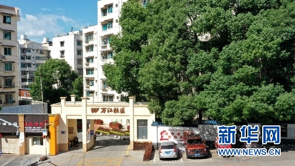 萬江社區萬江小區大門(6月28日攝,無人機照片)。新華網 周遠鋼攝