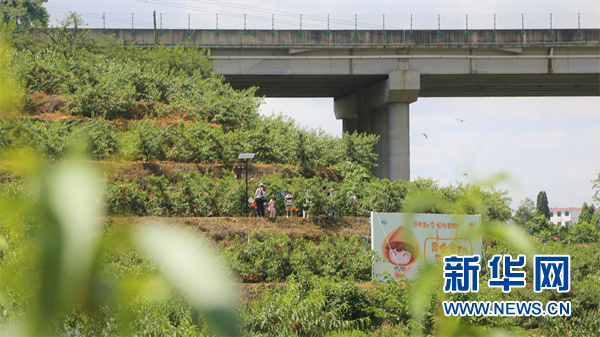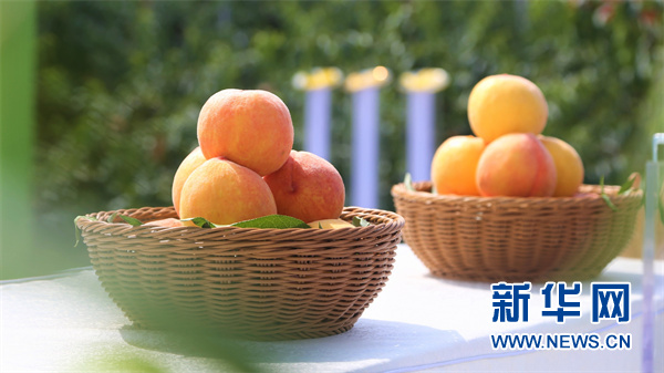 游客在黃金蜜桃果園採摘區採摘。新華網 蔡連素 攝