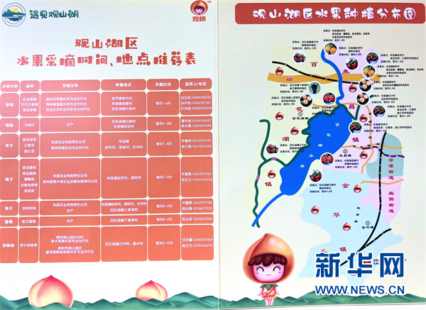 會議現場,觀山湖區農業農村局發布全區水果採摘線路:草莓採摘期為1至6月,地點在金華鎮翁井村、朱昌鎮高寨村;櫻桃採摘期為5至6月,地點在百花湖鎮石操村;黃金蜜桃、黃金奈李、紅蜜李子、金秋悅梨和鷹嘴桃採摘期為7至8月,地點在朱昌鎮郝官村、趙官村、長衝村;紫王葡萄和獼猴桃採摘期為8至10月,地點在百花湖鎮下麥城村、溫水村、雲歸村。(蔡連素)