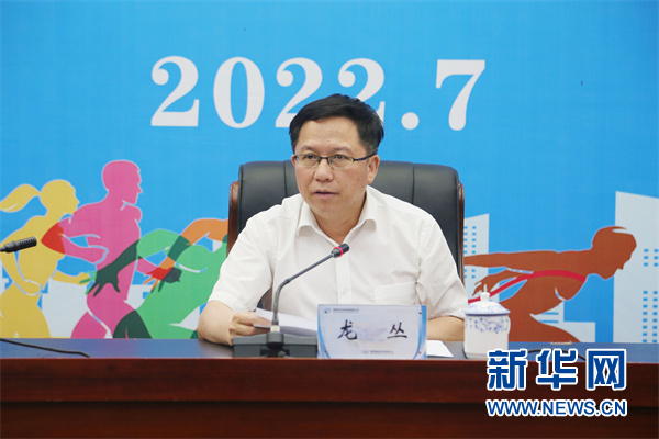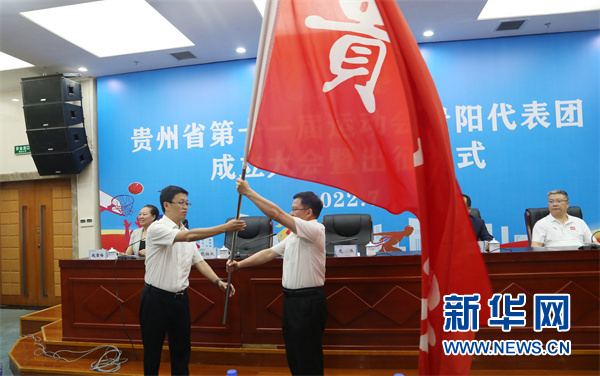 7月25日,龍叢向貴陽代表團授旗。新華網 盧志佳 攝