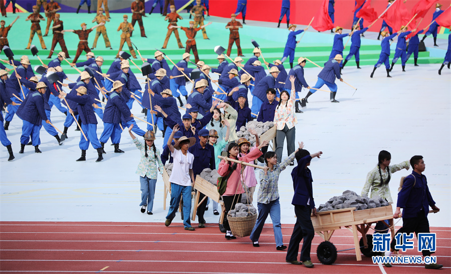 8月8日,貴州省第十一屆運動會開幕式上的“三線”主題演出。新華網 盧志佳 攝