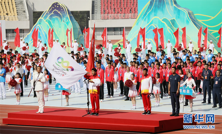 8月8日,運動員、教練員、裁判員代表在貴州省第十一屆運動會開幕式現場宣誓。新華網 盧志佳 攝