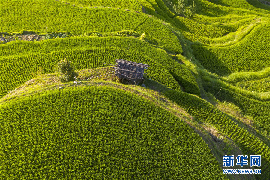 8月7日,在貴州省從江縣丙妹鎮宰略村拍攝的初秋梯田景色(無人機照片)。新華網發(吳德軍 攝)