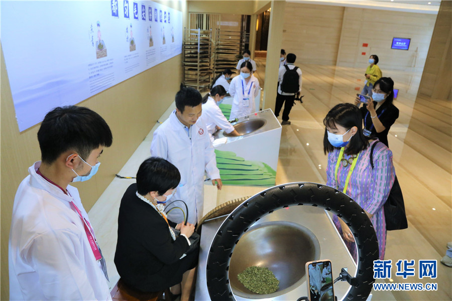 參會嘉賓觀看都勻綠茶炒制。新華網 蔡連素攝