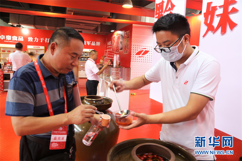 與會嘉賓品嘗泡椒。新華網發(蔡連素 攝)