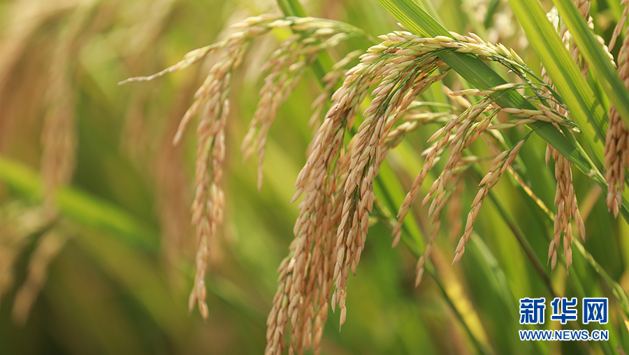 9月14日,貴州省大方縣小屯梯田顆粒飽滿的稻穗。新華網發(周訓貴 攝)