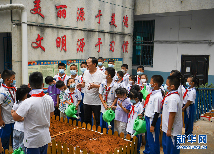 9月19日,貴州省黔東南苗族侗族自治州凱里市第四小學科學老師向同學們講解勞動的艱辛。新華網發(蔡興文 攝)