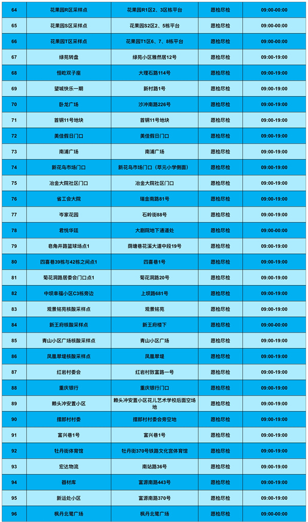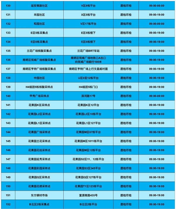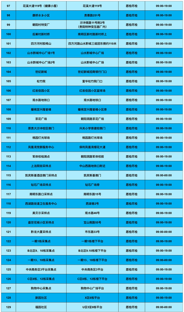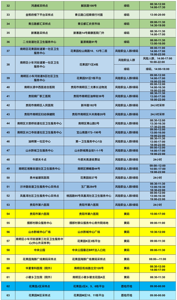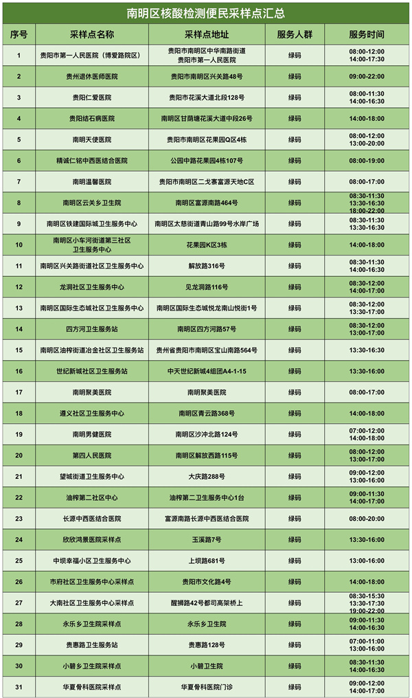 為滿足群眾核酸檢測需求,南明區新增和調整了部分核酸檢測便民採樣點,具體如下: