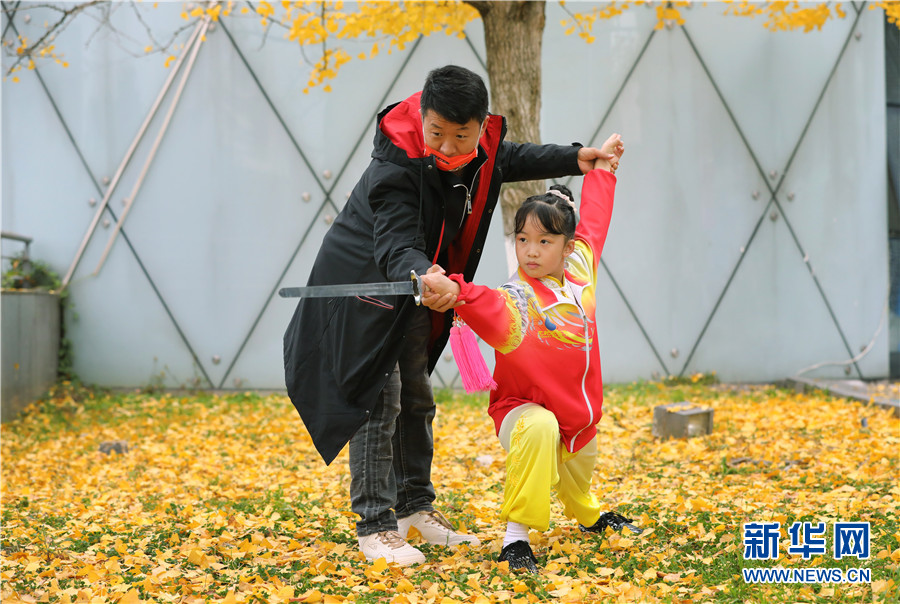 11月26日,一名選手賽前在教練指導下練習劍術。新華網 盧志佳 攝