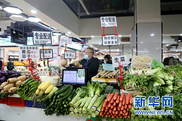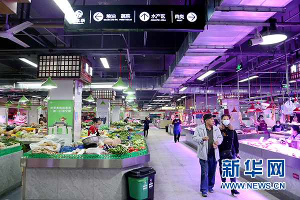 市民在民生路惠民菜場買菜。新華網 周遠鋼 攝