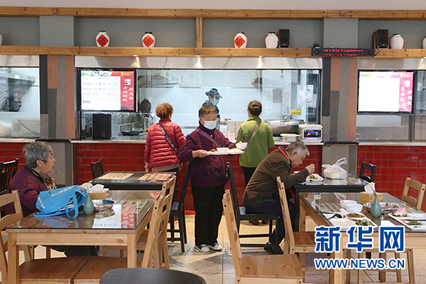 老人在民生路惠民菜場的“社區食堂”用餐。新華網 周遠鋼 攝