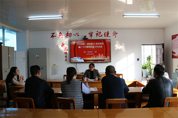 “四個載體”推動宣傳黨的二十大精神落地生根。為讓黨的二十大精神“餘音繞梁,落地生根”,普定支行以黨員大會、黨課、黨組中心組理論學習和主題黨日活動四種載體分層次宣傳黨的二十大精神。一是黨支部書記在黨員大會上帶頭宣講“框架結構”。黨支部書記以黨的二十大報告原文為基礎,宣講黨的二十大報告的總體框架和結構,為下一步深入領會精神實質打好基礎。二是黨員領導幹部上黨課分析“內在邏輯”。支行召開黨員大會,黨組成員、副行長以普通黨員身份為全體黨員幹部上黨課,結合黨的十八大、十九大深入解讀黨的二十大報告內在邏輯,號召黨員同志發揮先鋒模範帶頭作用,推動黨的二十大精神落地生根。三是黨組中心組理論學習研究“重點難點”。在支行黨組中心組理論學習研討會上,黨組成員交流發言,研究明確了黨的二十大精神與普定支行目前工作實踐相結合的重點領域和難點問題,為下一步工作指明了方向。四是黨員同志參加主題黨日活動討論“特色亮點”。支行黨支部召開主題黨日活動,黨員同志立足崗位實際,以“如何貫徹黨的二十大精神”為題,交流討論2023年普定支行亮點工作。