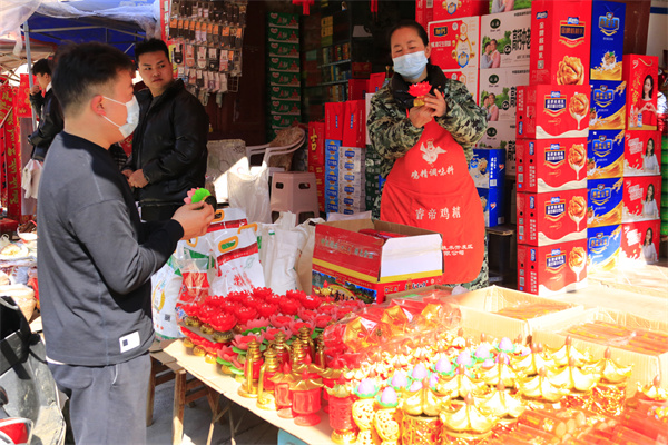 隨着鄉鎮上的氣氛逐漸熱鬧起來,不少商戶正加緊進貨,以保證節日期間市民的購買需求。