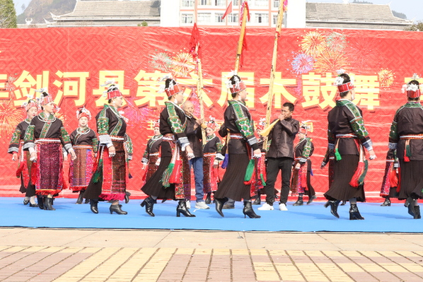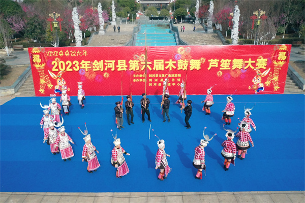 1月24日,新年農曆初三,劍河縣舉行第六屆木鼓舞、蘆笙舞比賽,來自劍河和&江的38組隊伍參加比賽,以獨具民族特色的舞蹈歡慶新春佳節,鼓點激越、舞步翻飛……吸引眾多游客駐足觀賞,共享歡樂新年。