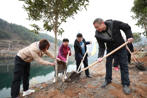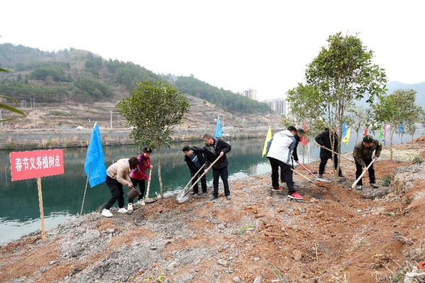 1月28日,貴州省黔東南苗族侗族自治州劍河縣幹部職工在劍河城郊義務植樹點植樹。楊家孟 攝