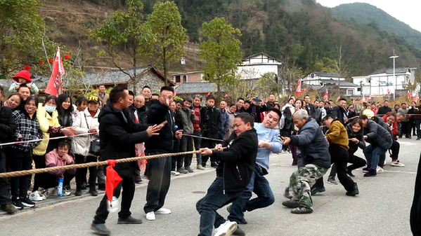 在拔河比賽現場,分別來自平舟鎮10個村民小組組建的拔河隊伍摩拳擦掌,準備大顯身手,賽前大家都對爭奪冠軍充滿信心。隨着裁判一聲令下,拔河隊員們使出渾身力氣,齊心協力、共同使勁一爭勝負。