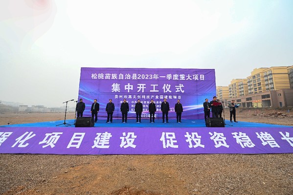 2月8日,松桃苗族自治縣2023年第一季度重大項目集中開工儀式在蓼皋街道枇杷社區花鼓大道東側舉行。