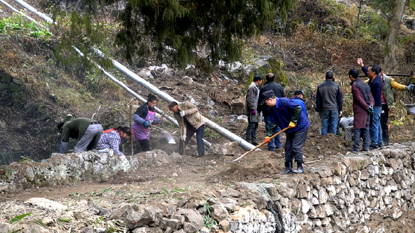 新關村壩王組村民石光軍介紹:“耕種困難,好多土地都撂荒了,去年我們已經挖了一條,今年我們想挖一條到我們高坡裏面去。”