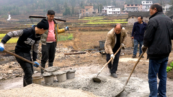 新關村壩王組村民石永説:“趁春節期間,大家都在家,我們搞這條機耕道到山背後,搞好以後,去山背後種土地很方便。”