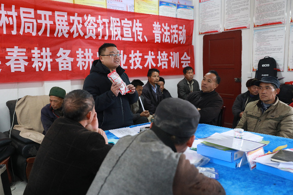 劍河縣革東鎮皆翁村舉行春耕備耕農技培訓會。(晏學源 攝)
