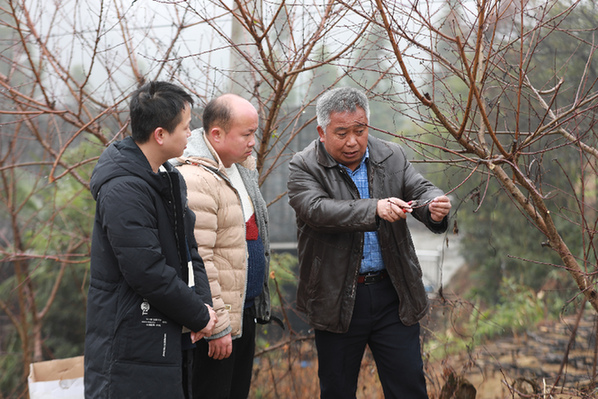 培訓會後,農業專家還走進田間地頭,從修枝整形、施肥等方面入手,對春季桃樹特點進行了詳細講解,在現場手把手教村民們剪枝。
