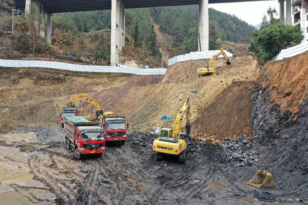 劍河縣大型綜合停車場項目點施工現場 。(彭郡 攝)