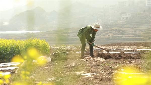 2月13日,村民在貴州省大方縣石桅村早熟糯玉米基地起壟。周訓貴 攝