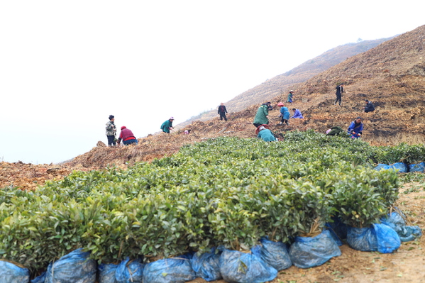 現場培訓完畢,群眾便扛着鋤頭,拿着茶苗開展種植,挖坑、分揀茶苗、栽苗、覆土……現場一派繁忙,大家都鉚足了幹勁,一起種下未來增收致富的“新希望”。