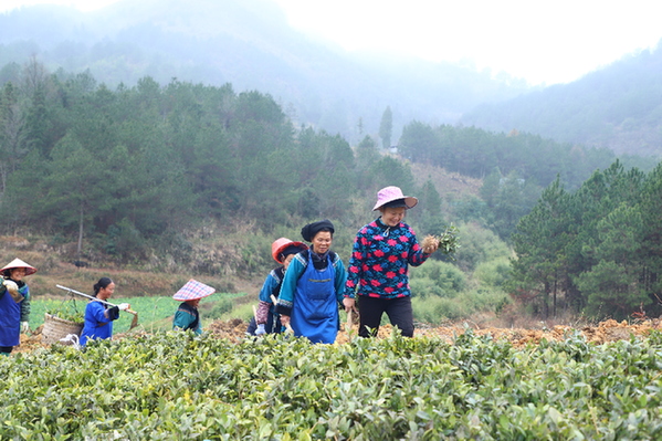“我租田得錢,來種茶也得錢,過幾年來採茶也得錢,管理也得錢,多方面都得錢,我們老百姓的腰包也鼓起來啦。”務工群眾潘強喜笑顏開地説。