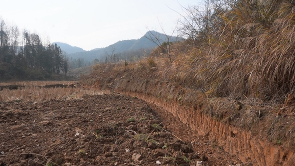 岑鞏縣羊橋鄉祝壩村陸家灣組的雜交水稻制種基地,新開挖好的溝渠。(周燕 攝)
