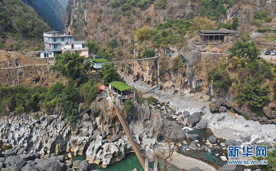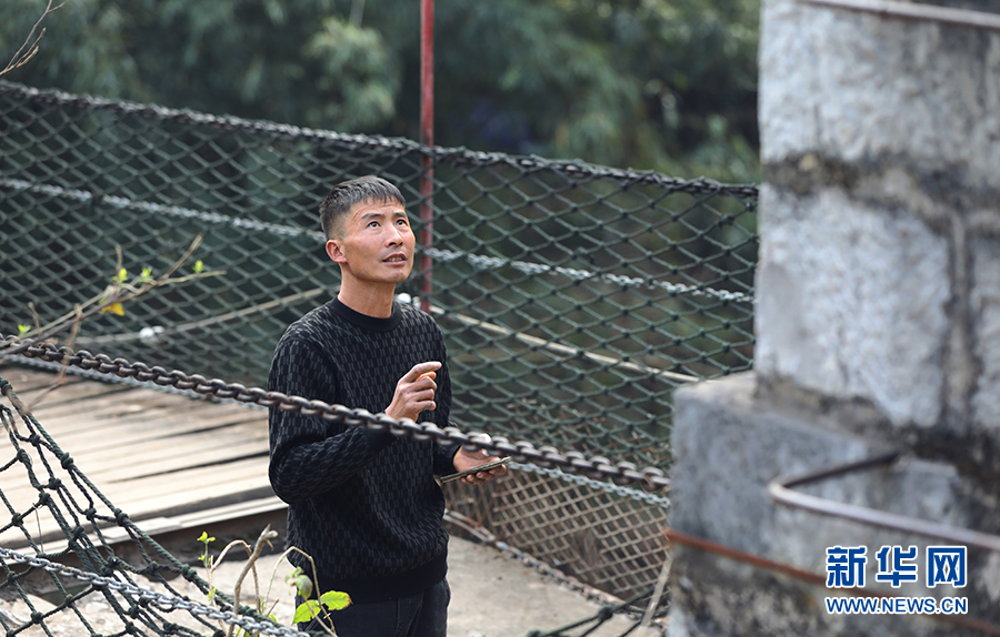 2月18日,小馬哥夫婦倆買完菜回家經過那座小吊橋。新華網 盧志佳 攝