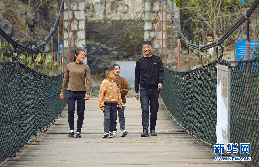 小馬哥家門前除了北盤江大橋,還有兩座吊橋,遠處那座勝利橋修建於1970年,近處的小吊橋修建於1990年。新華網 盧志佳 攝