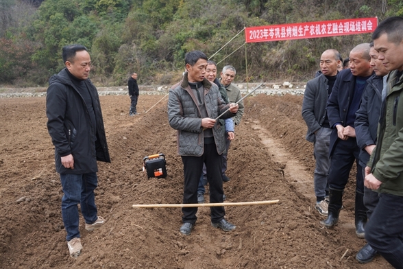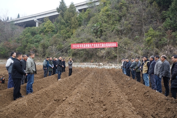 岑鞏縣天馬鎮苗落村開展烤煙生産農機農藝融合現場培訓。吳念攝