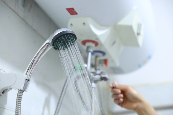 劍河縣革東鎮一農戶家衞生廁所裏安裝的熱水器和花灑。(吳昌連攝)