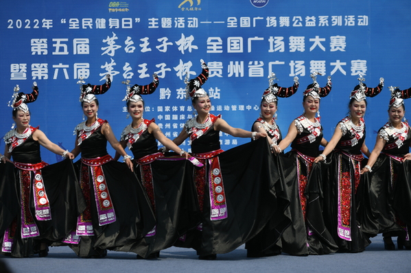 第五屆“茅&王子杯”全國廣場舞大賽暨第六屆“茅&王子杯”貴州省廣場舞大賽(黔東南州站)比賽現場。(楊仁海 攝)