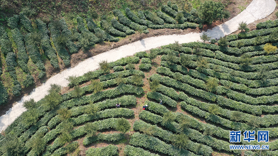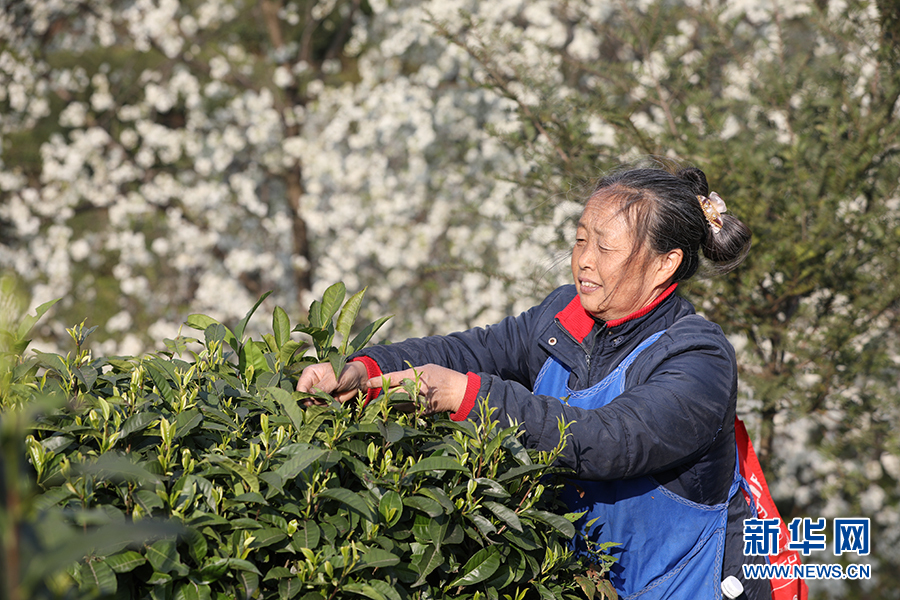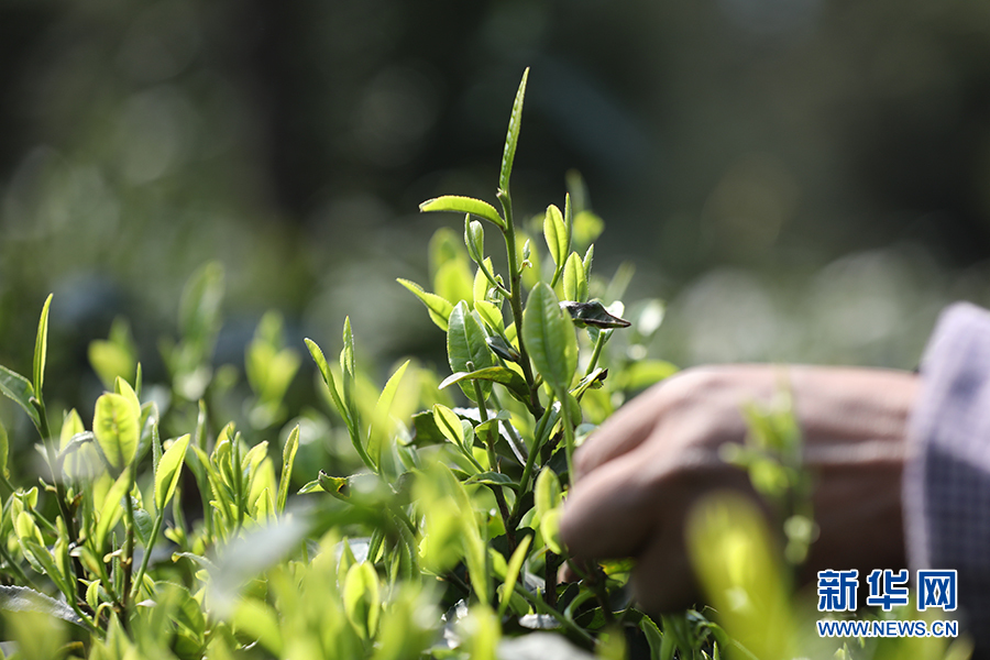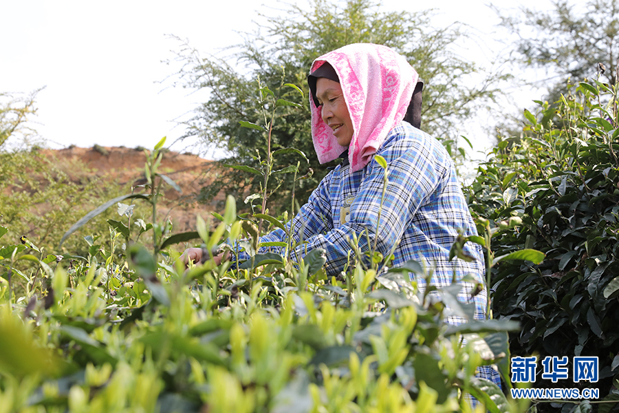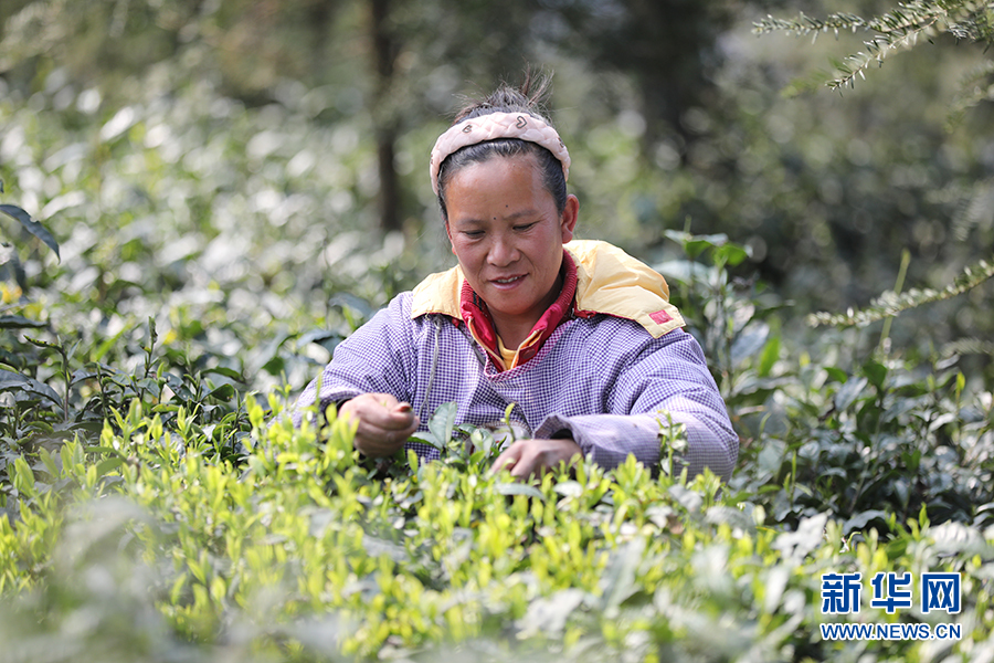 3月13日,茶農在貴州省晴隆縣碧痕鎮生態茶園採摘早春茶。新華網 盧志佳 攝