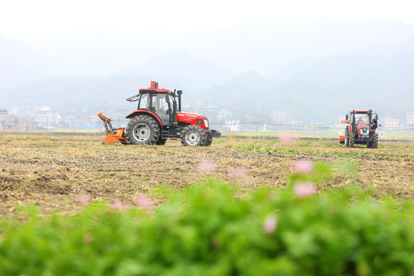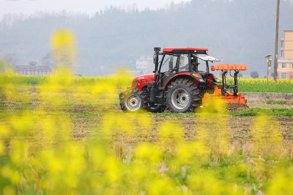 農田裏,農機“駕校”正在火熱開班中,農機手潘盛彬正在向農民講解大型旋耕機的操作要領,為合作社培訓一批新的農機手,以備春耕。