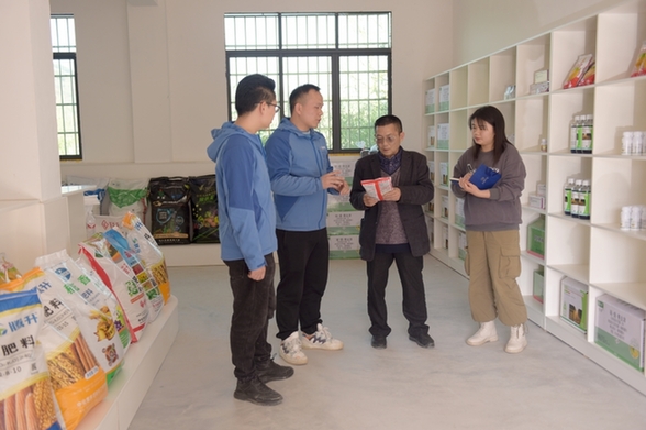 3月13日,岑鞏縣供銷社農資公司負責人查看農資配備情況。(唐鵬 攝)