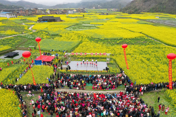 油菜花開正當時,遍地金黃沐春風。3月18日,貴州省劍河縣南明鎮永興社區第二屆油菜花節開幕。