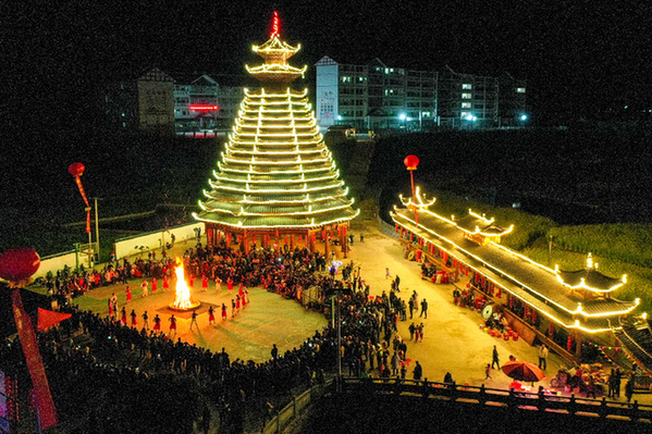 村民和游客圍着篝火載歌載舞。晏學源攝