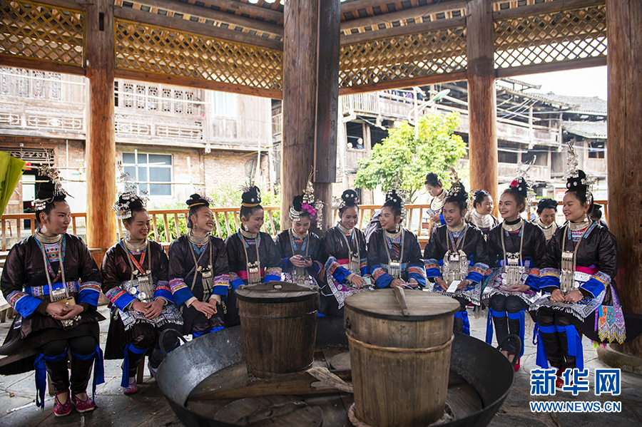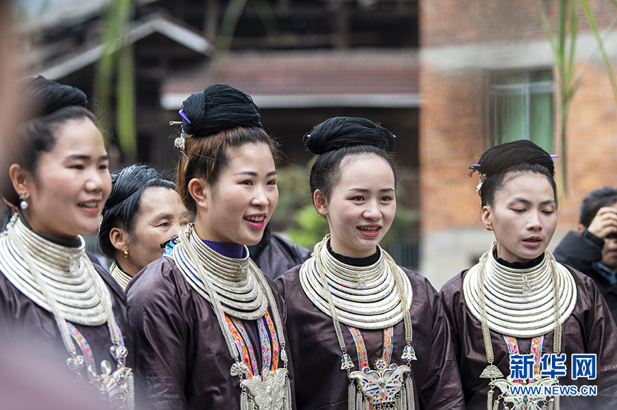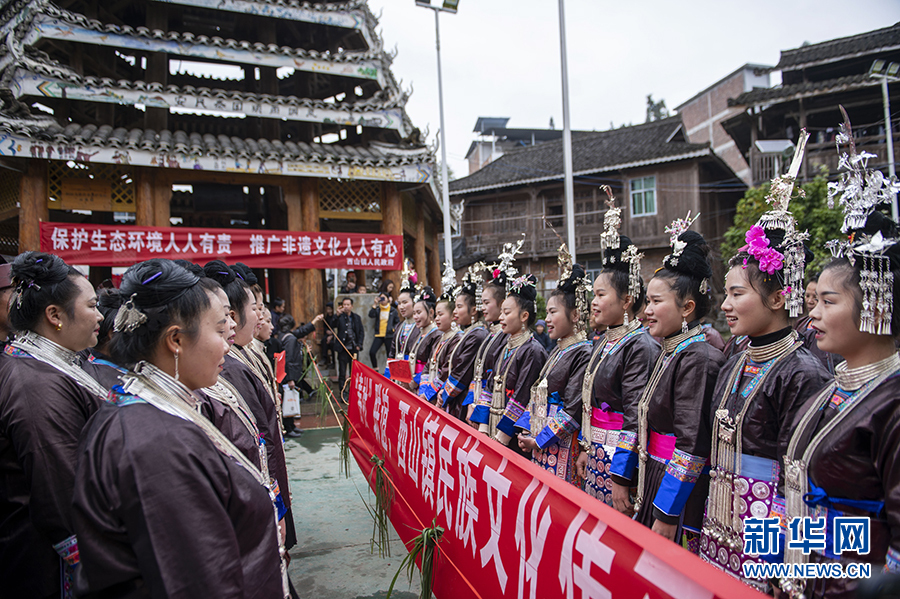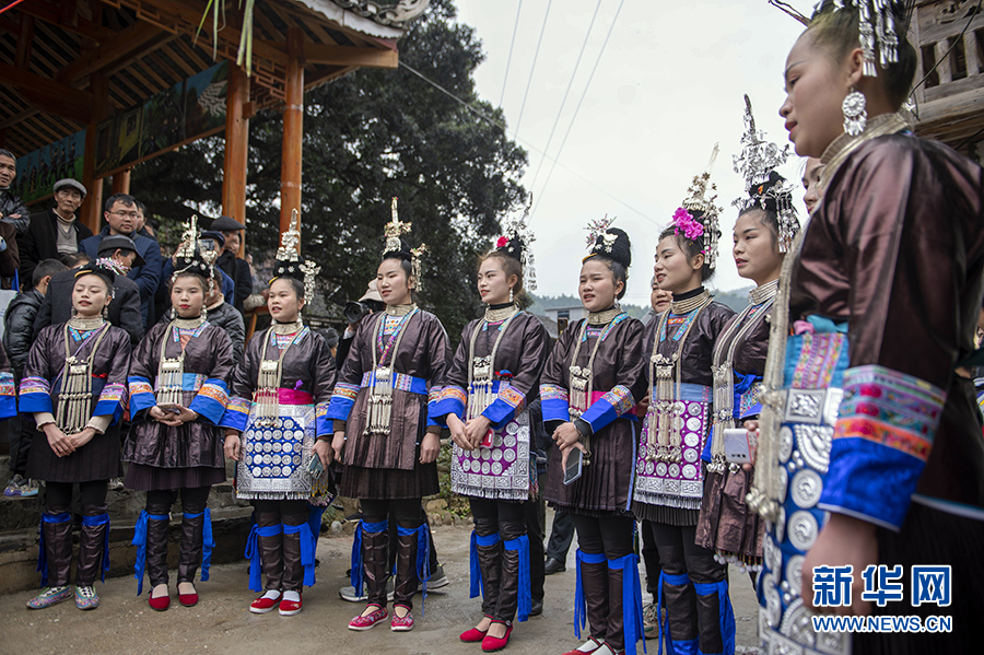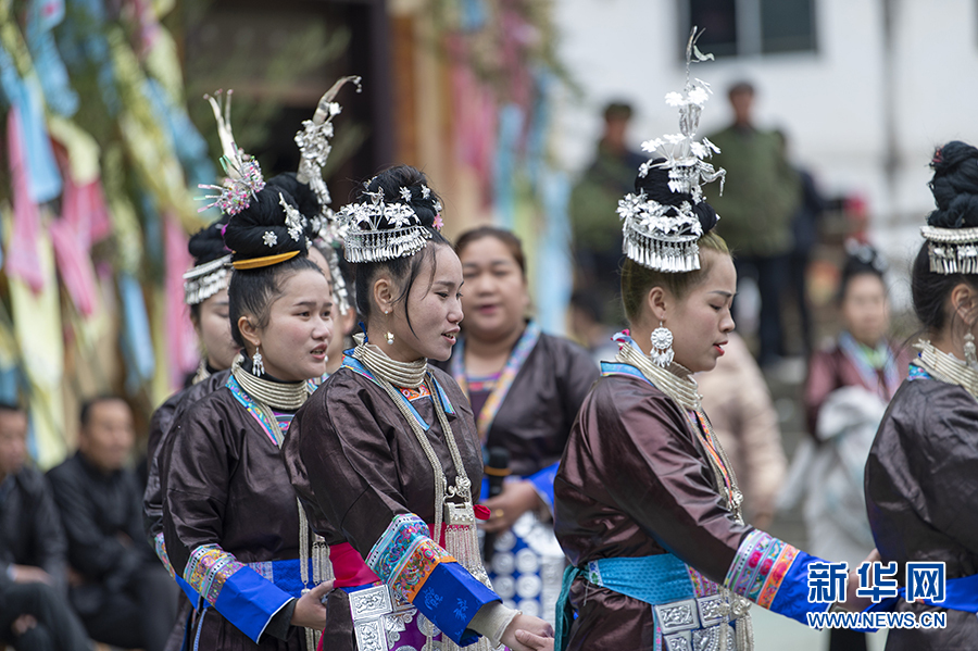 3月25日,在貴州省從江縣西山鎮陡寨村,侗族同胞在對唱攔路歌。新華網發(吳德軍 攝)