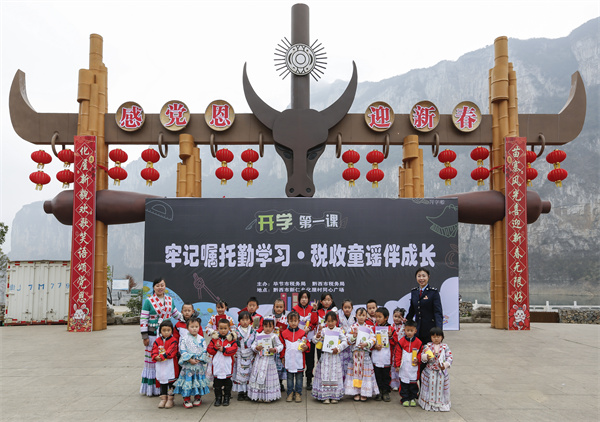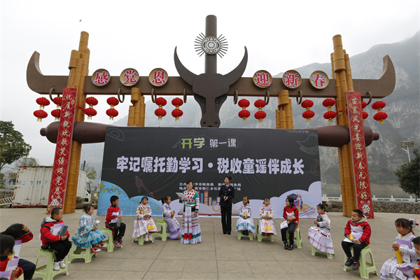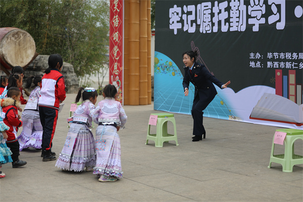 畢節市稅務局、黔西市稅務局在黔西市新仁鄉化屋村同心廣場開展“牢記囑託勤學習 稅收童謠伴成長”開學第一課活動