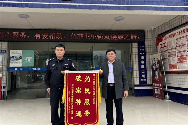 3月21日,楊某一家在處理好家中事務後,主動來到平塘縣公安局塘邊派出所,將一面印有“破案神速,為民服務”錦旗送到民警手中,向民警表達了謝意。“這樣一心為民的民警,是人民的好警察,有這樣的好警察,真是我們的福氣。”楊某説道。